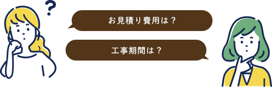 工事の規模や内容により様々ですので、期間については、着工前に工期スケジュールをご説明いたします。天候や工事の進行状況により変更となる場合もございますが、その際はご説明・ご相談させていただきます。